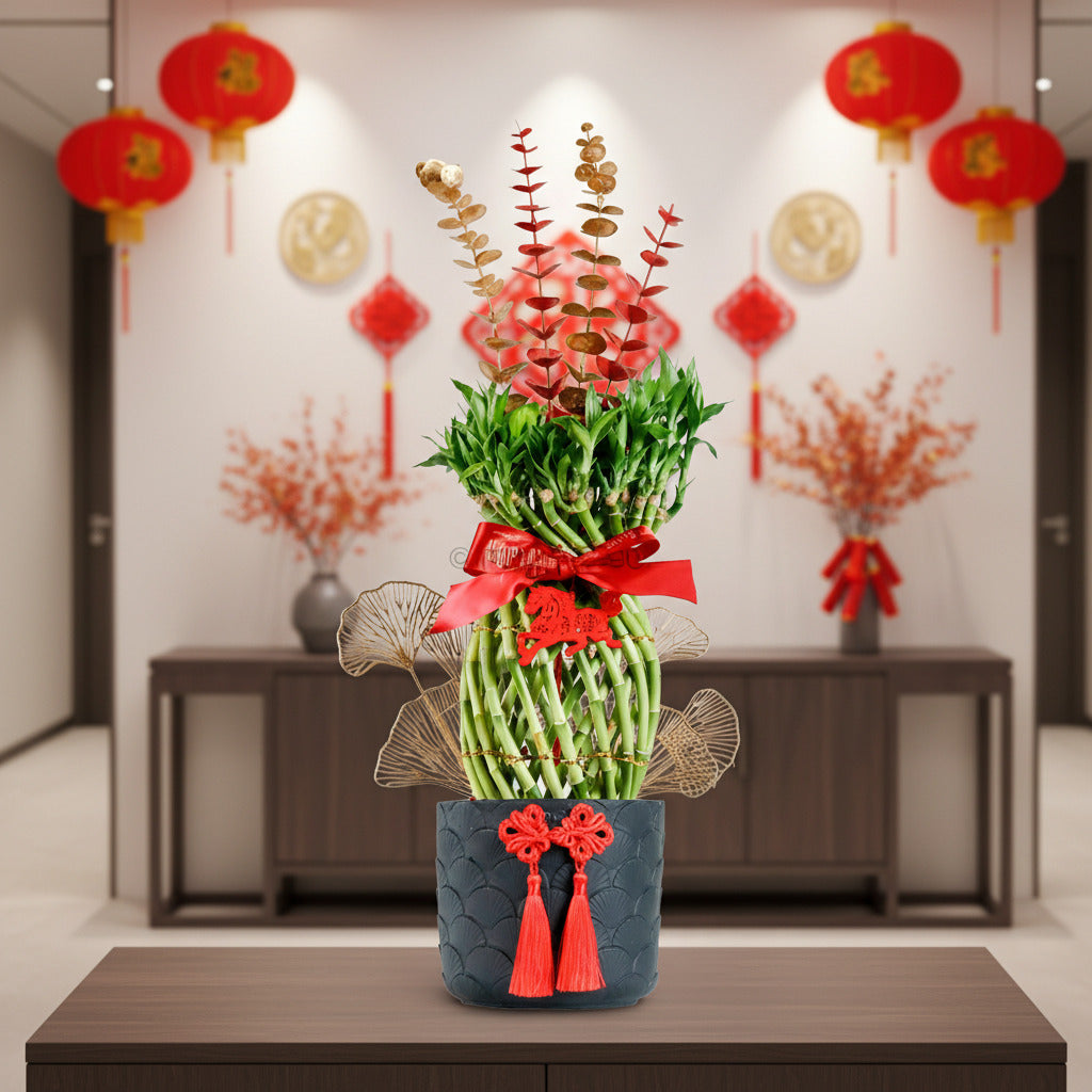 Lucky Bamboo Pineapple Braided (猪笼入水) (195cmcm, 138cm, 120cm, 100cm, 63cm) in Ceramic Planter